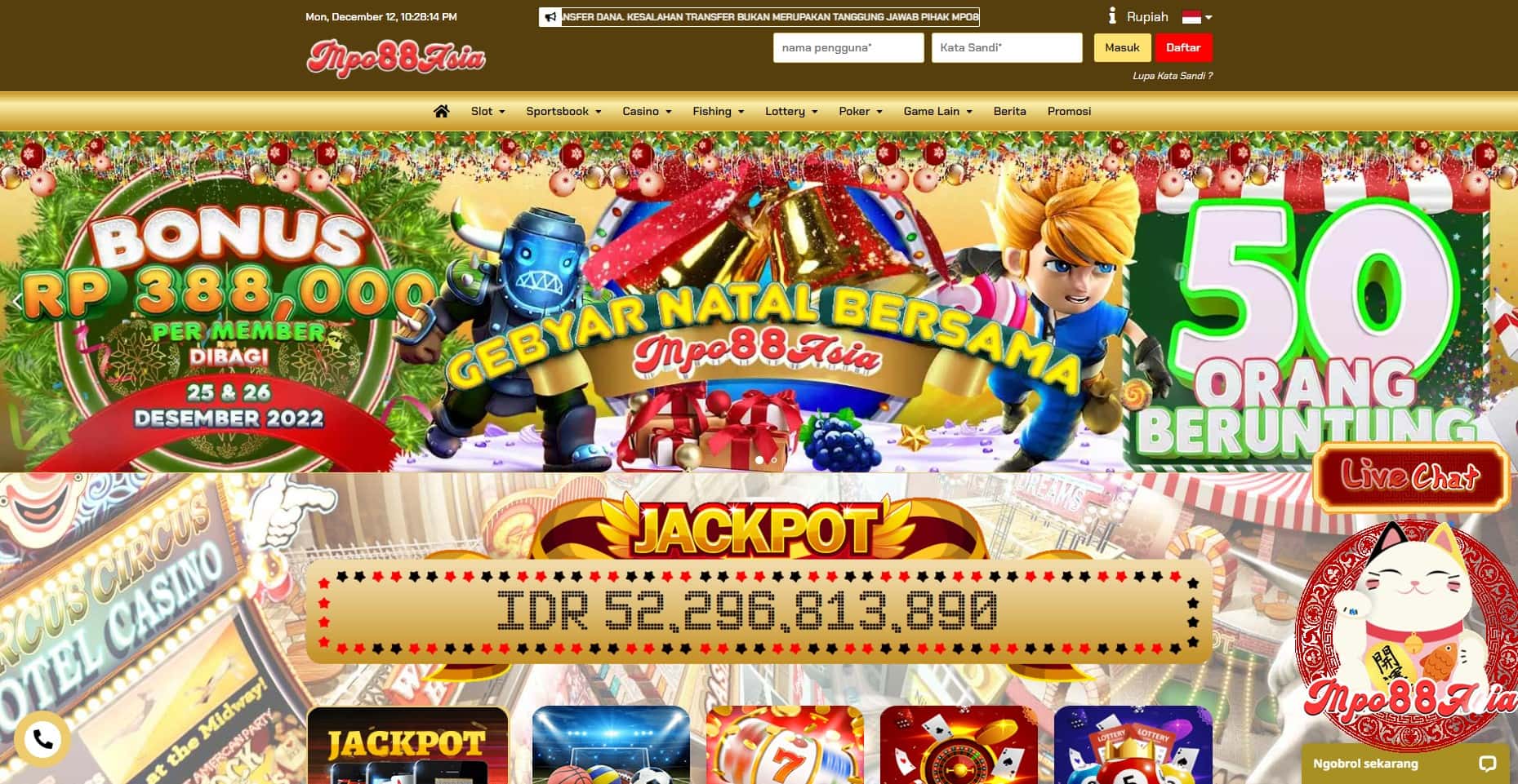 Semua jenis permainan yang kami sediakan sudah dipilih mana yang bisa memberikan kemenangan kepada member. Oleh sebab itu kami disebut sebagai situs mpo slot yang hoki. Kami juga memiliki penawaran promosi bonus yang besar dengan minimal deposit hanya 15 ribu saja. Jadi gabung sekarang juga dengan kami MPO88ASIA kami siap dikritik jika dirasa ada yang kurang dari segi pelayanan yang kami berikan.